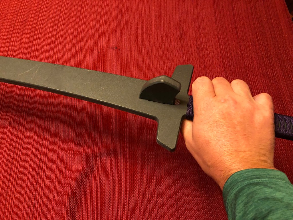 The TLDR version is that these are excellent products for the money, especially for a club. While I would not want to spar full speed with these due to their lack of flexibility and mass, they do provide a good approximation of much more expensive trainers. I am very happy with the handle length for practicing handle wrap plays. I also really like that the nagel is attached by a ring backing making it removable. When we have a lefty in class, it is an easy task to reverse the direction of the nagel rather than having to have lefty specific gear on hand. The plastic material is very strong and I really like the grey color.
