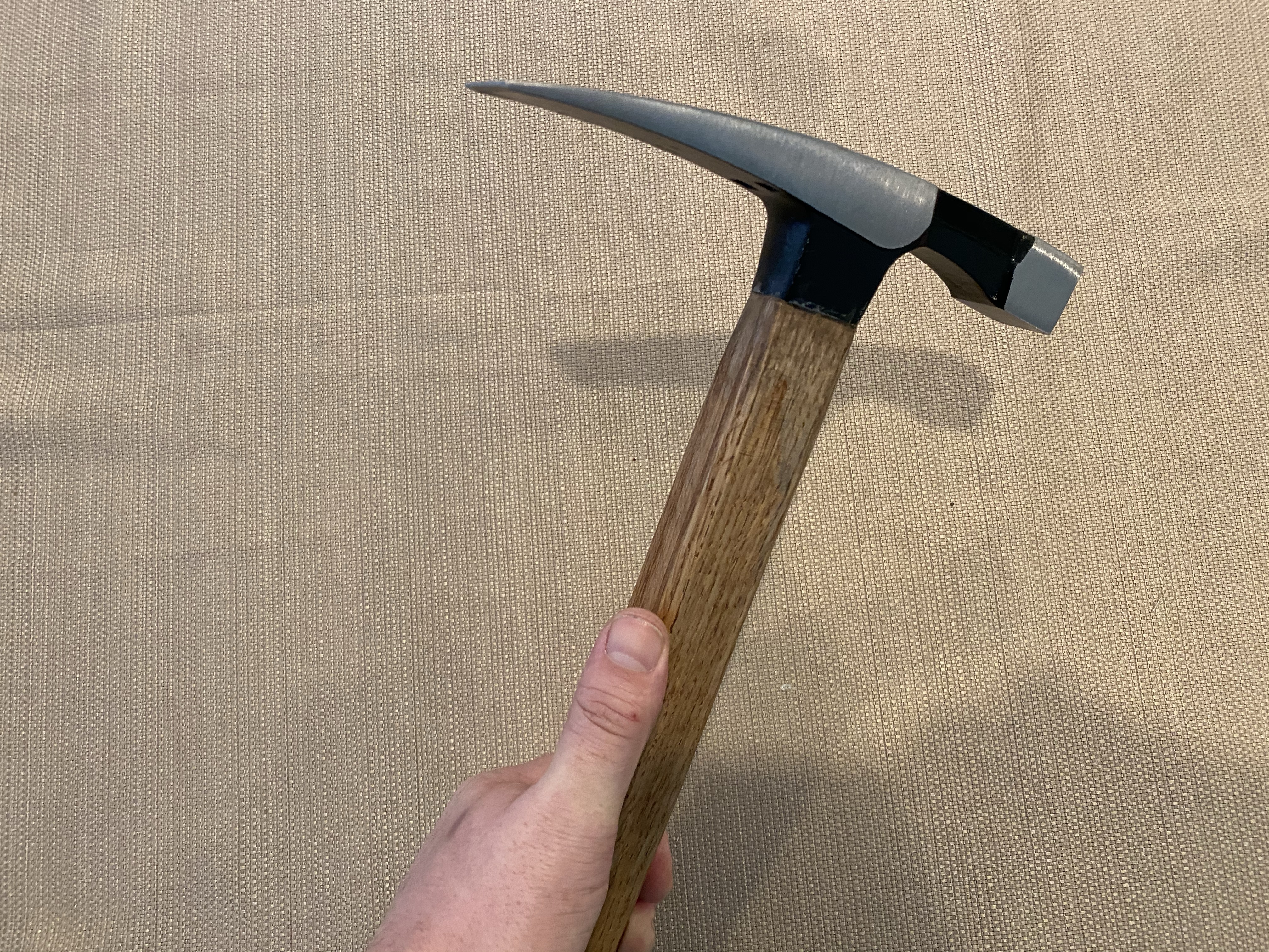 - Mason Hammer from NorthernTool.com. I used a mason hammer as it was long, flat, and light. – $17.98 shipped