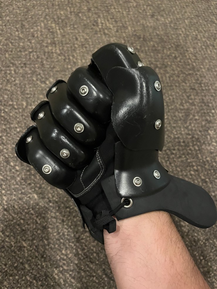 The real test of a HEMA glove is protection. I have sparred with the gloves for a few months with many hits to the hands with both steel and synthetic weapons. I have never had any pain or discomfort from a hit and sometimes must rely on sound to even know I have been hit. The shell of the glove forms a secure shield around my hand and fingers that braces against the handle of the weapon. This design, along with padding between the inner glove and the hard shell, effectively transfers force into the weapon handle and away from my hands. The only issue I have had is that occasionally the plates will pop from under to over one of the other plates. This is easy to fix, and I can usually feel it when it happens.