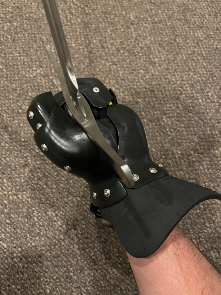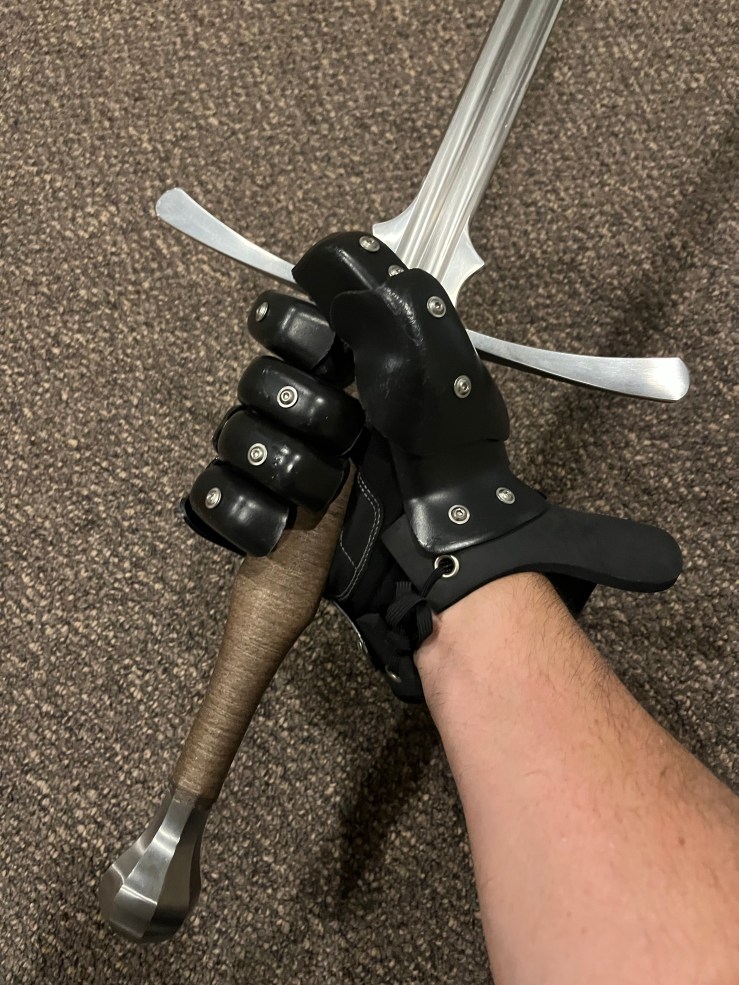 First impressions were very good, the gloves fit perfectly and unlike other HEMA gloves I have used, they required little to no break-in time. I am able to put on and take off the gloves easily and have enough dexterity to work the zipper on my coat and manage my helmet. After taking up some of my swords, I found the grip to be secure and comfortable and could even use the finger ring on my Regenyei sidesword.